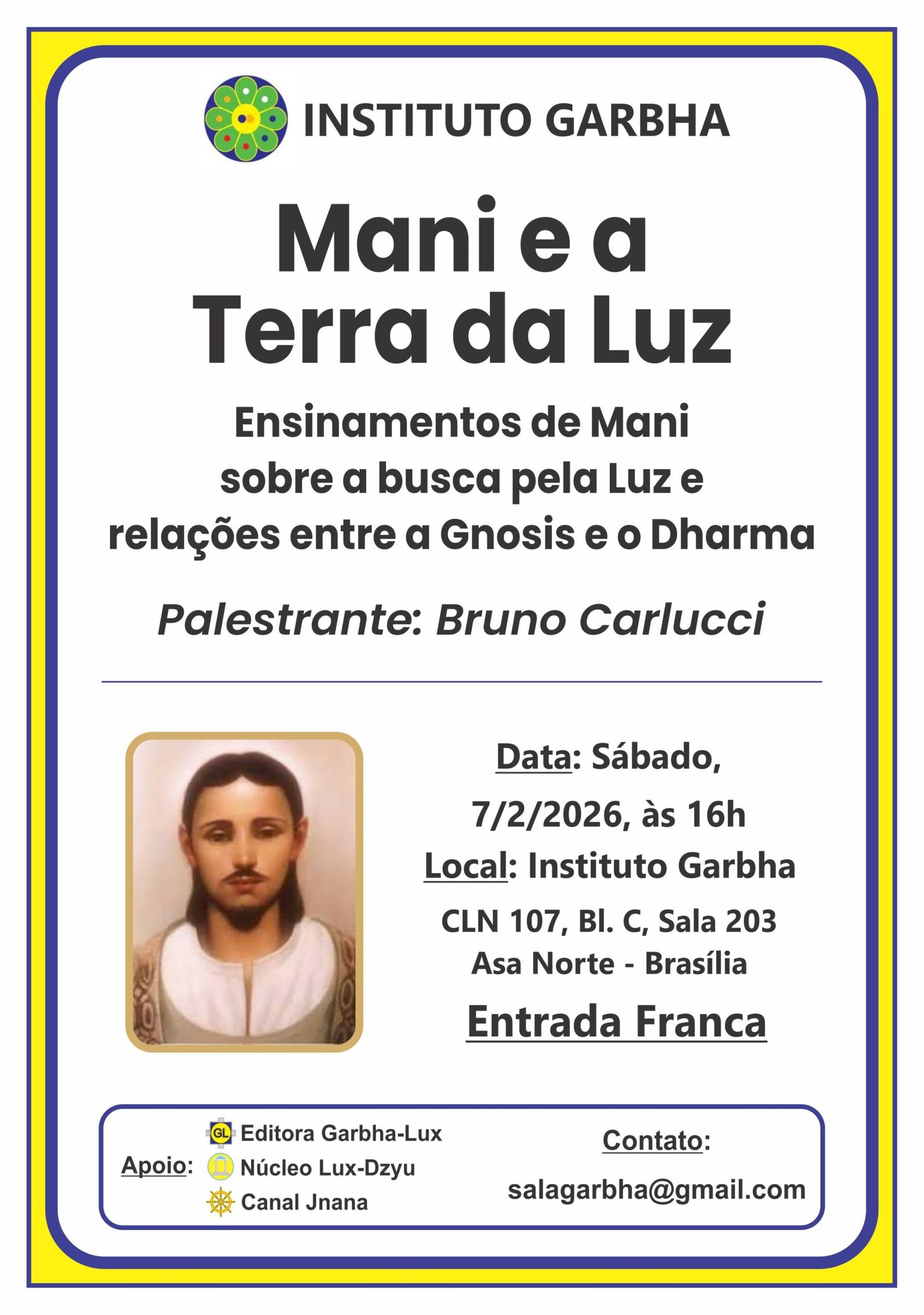 "Mani e a Terra da Luz - Ensinamentos de Mani sobre a busca pela Luz e relações entre a Gnosis e o Dharma" Entrada Franca! Mais informações, clique no título |