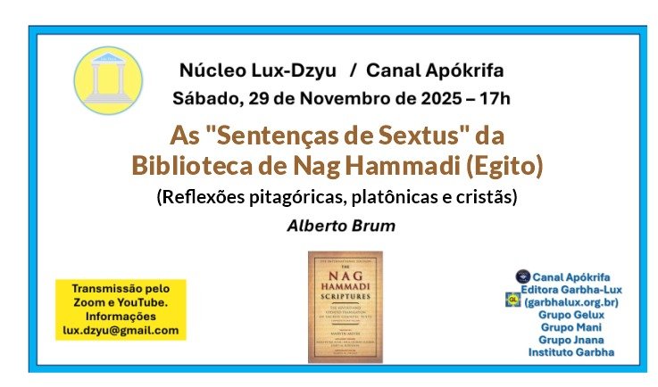 Estudo em encontro presencial do livro "Os Evangelhos Gnósticos", de Elaine Pagels, a partir da playlist do Canal Apókrifa. Sábado, 22/11/2025 |