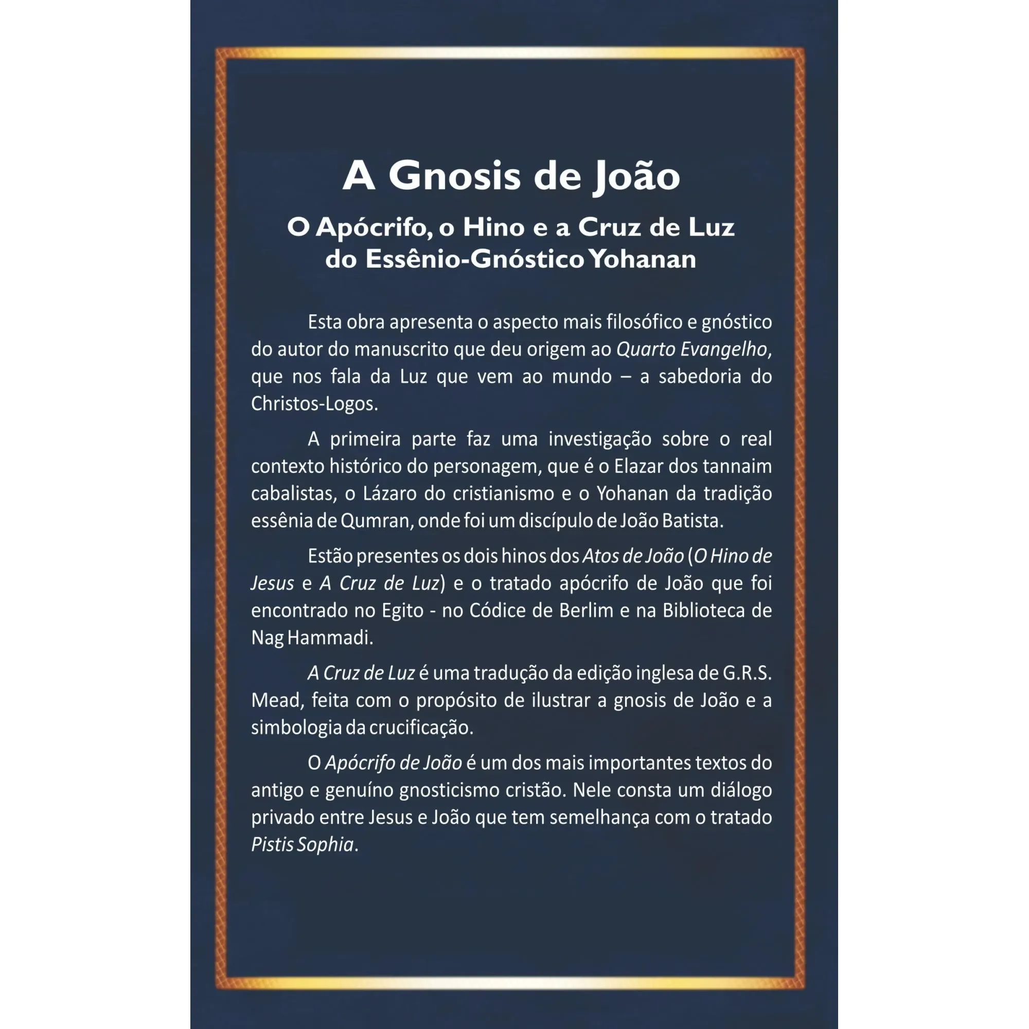 Esta obra apresenta o aspecto mais filosófico e gnóstico do autor do manuscrito que deu origem ao Quarto Evangelho, que nos fala da Luz que vem ao mundo – a sabedoria do Christos-Logos.