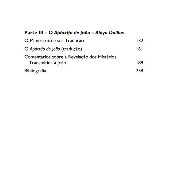 Estão presentes os dois hinos dos Atos de João (O Hino de Jesus e A Cruz de Luz) e o tratado apócrifo de João que foi encontrado no Egito: no Códice de Berlim e na Biblioteca de Nag Hammadi.
